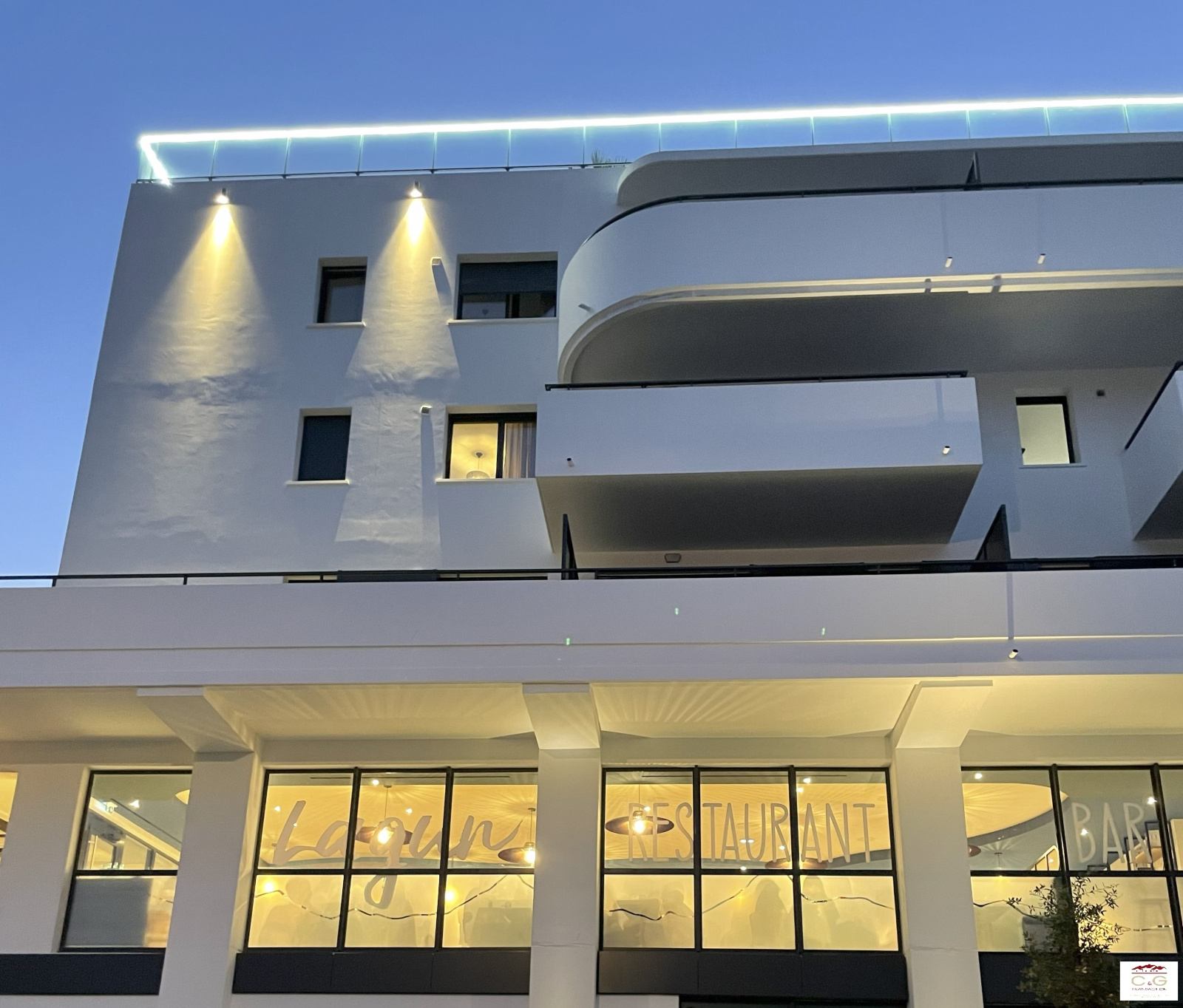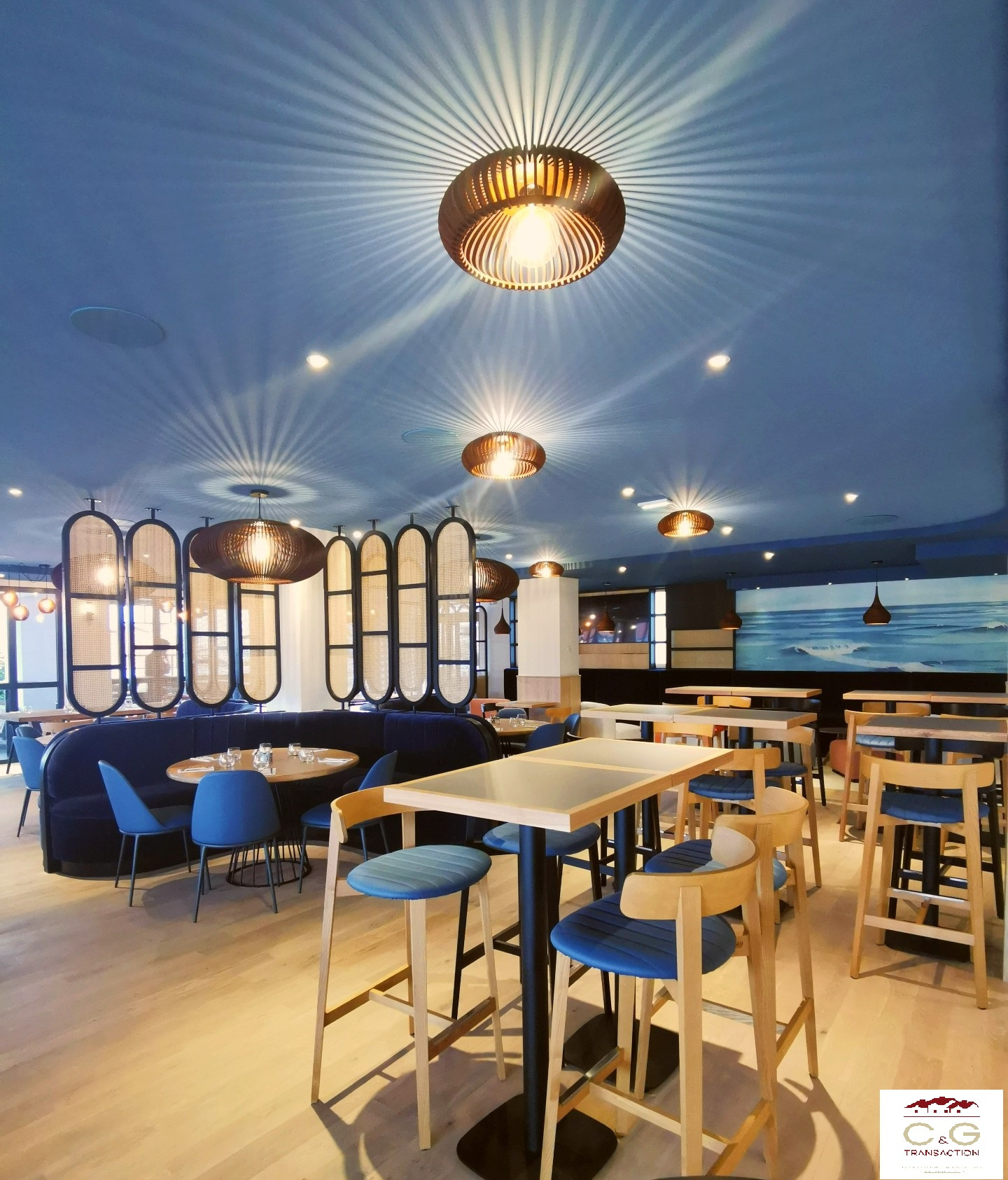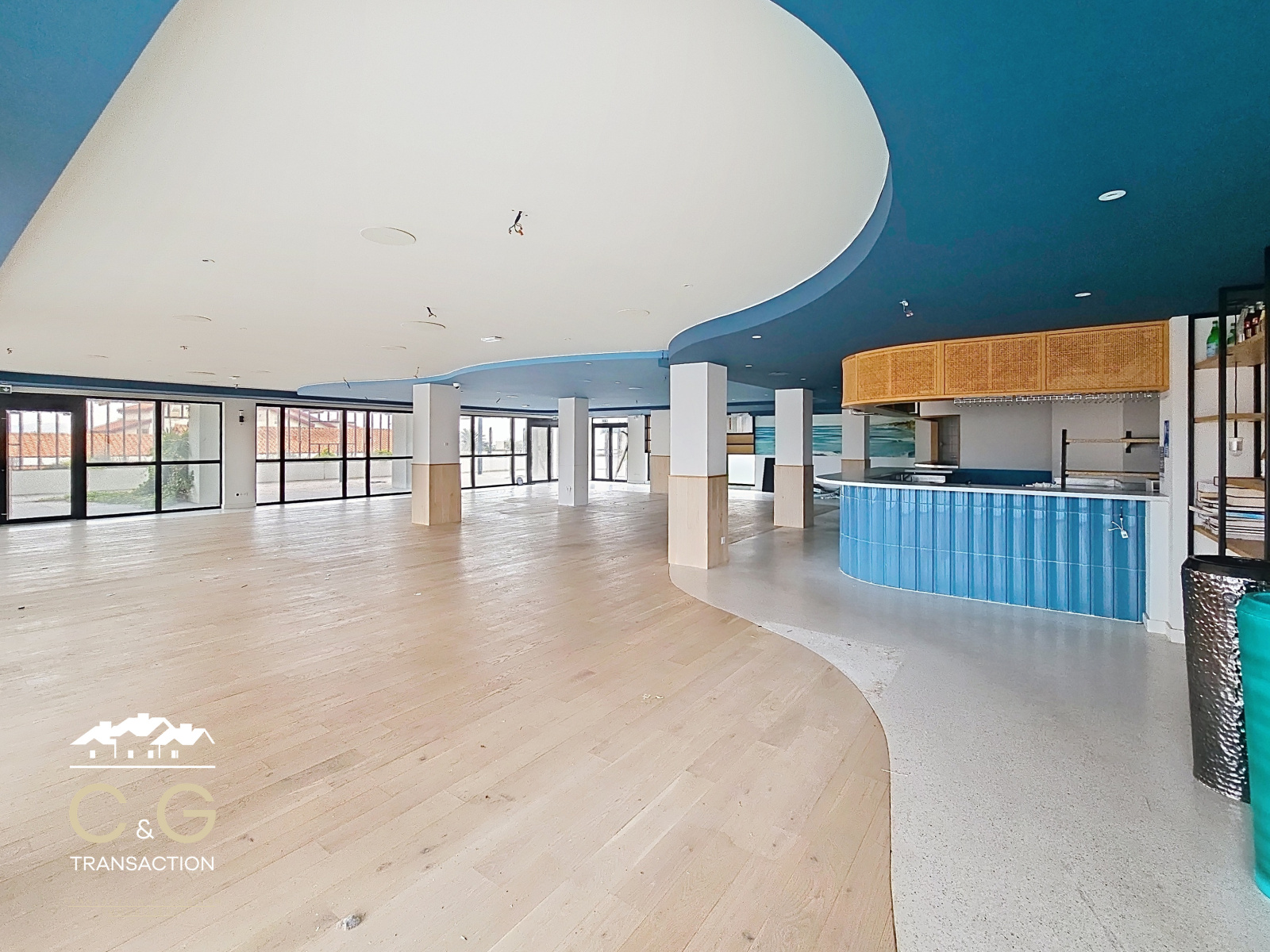 Au calme, idéalement bien situé, cet ensemble immobilier aux grands volumes peut répondre à de multiples projets. Jusque-là, c’était un restaurant chic et design avec une grande capacité d’accueil (160 personnes + 100 à l’extérieur). Confort de cette splendide et lumineuse pièce de 212 m2 qui s’ouvre sur une terrasse de 212 m2 à la conception bioclimatique ornée de lampes ‘marines’ spécialement conçues par un Designer. Une distribution très bien réfléchie, pour cette activité de restauration comprenant la salle principale, une cuisine avec zone de préparation, plonge et réserve, salle d’eau avec deux toilettes, local technique, bureau, et une salle de pause munie de vestiaires avec douches sanitaires mixtes pour le personnel.