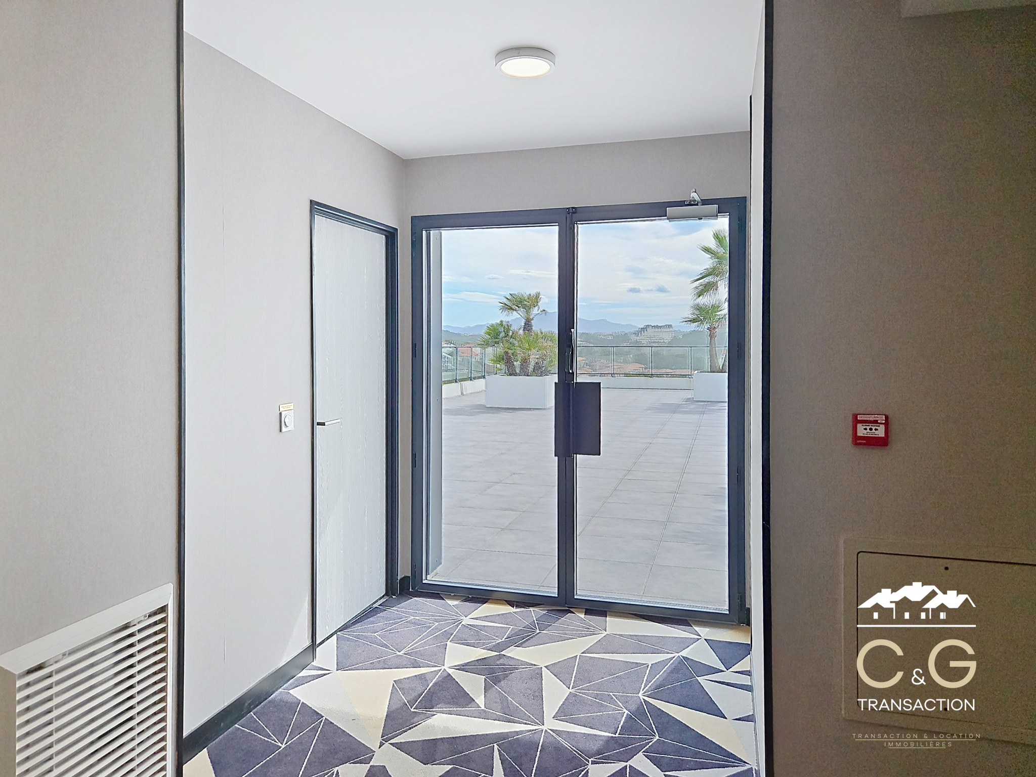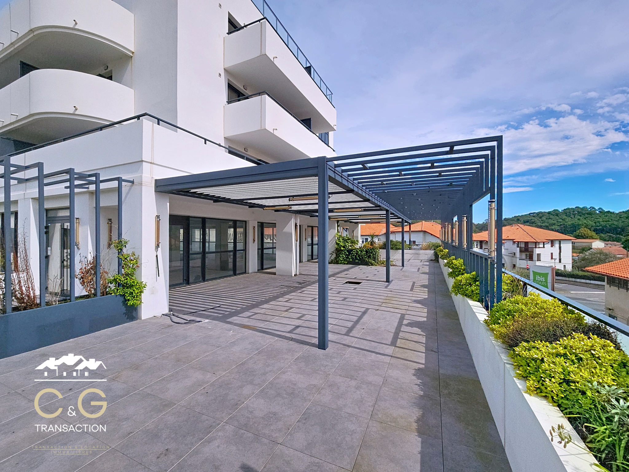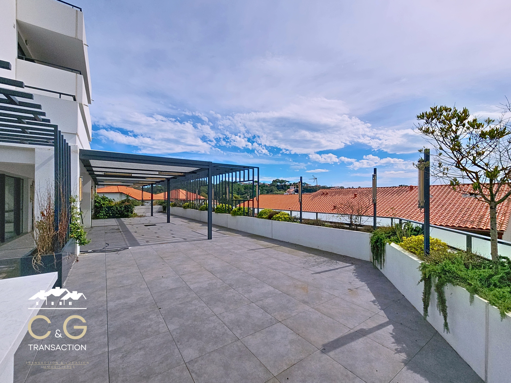 Au dernier étage, via l’ascenseur, une splendide terrasse – en copropriété – un rooftop, vue sur océan et Pyrénées, qui a déjà servi à de l’évènementiel.