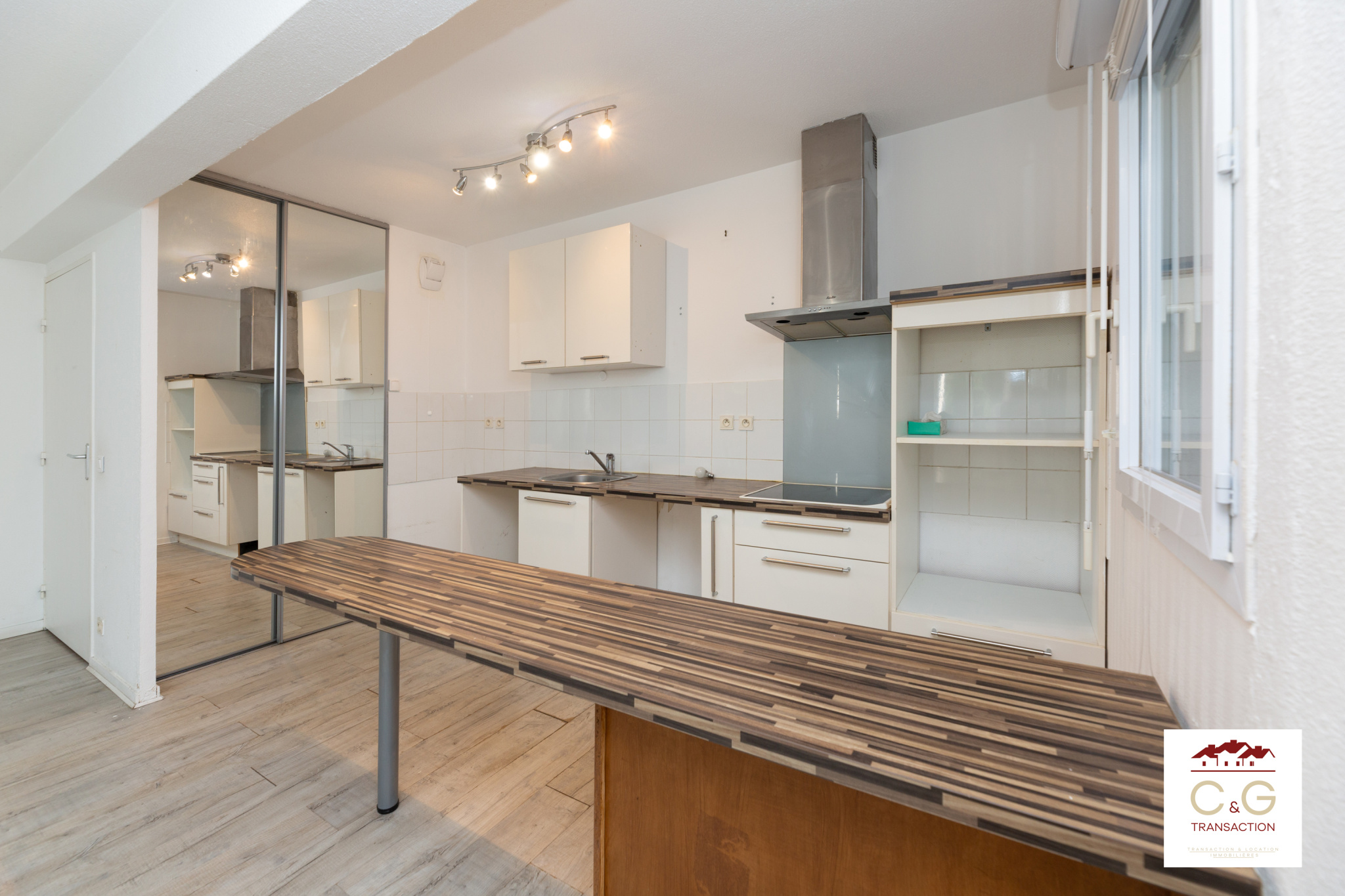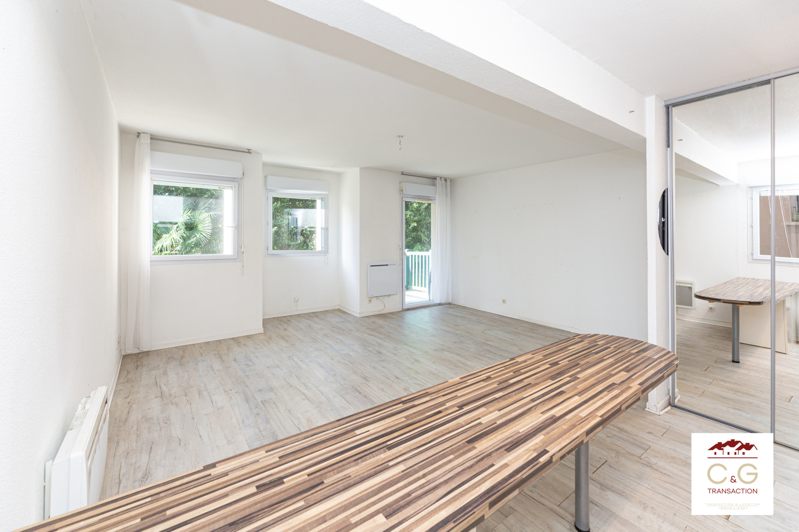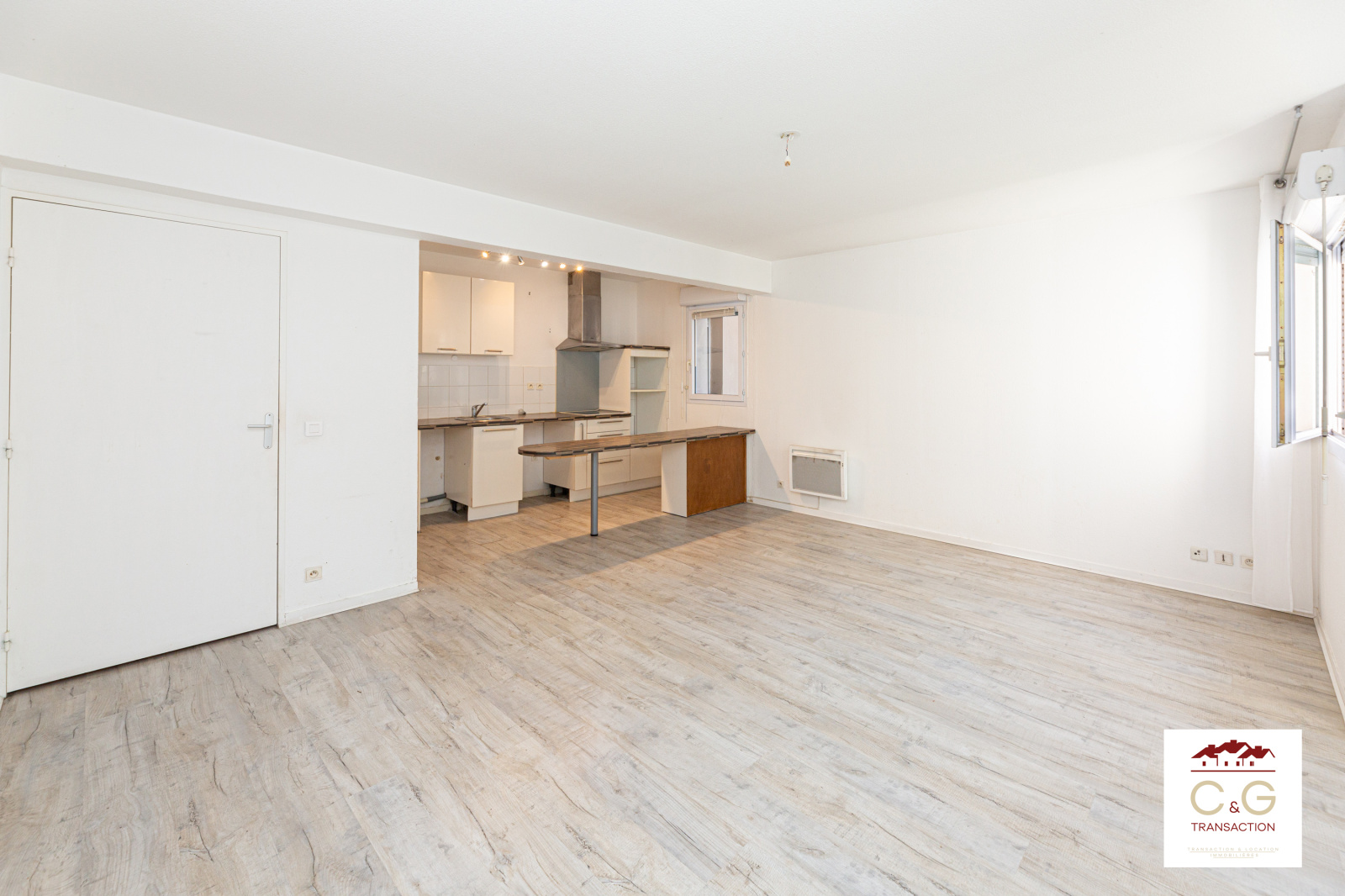 L'appartement se compose d'une entrée avec placard qui dessert un séjour cuisine lumineux de 29m2 ouvert sur un grand balcon.