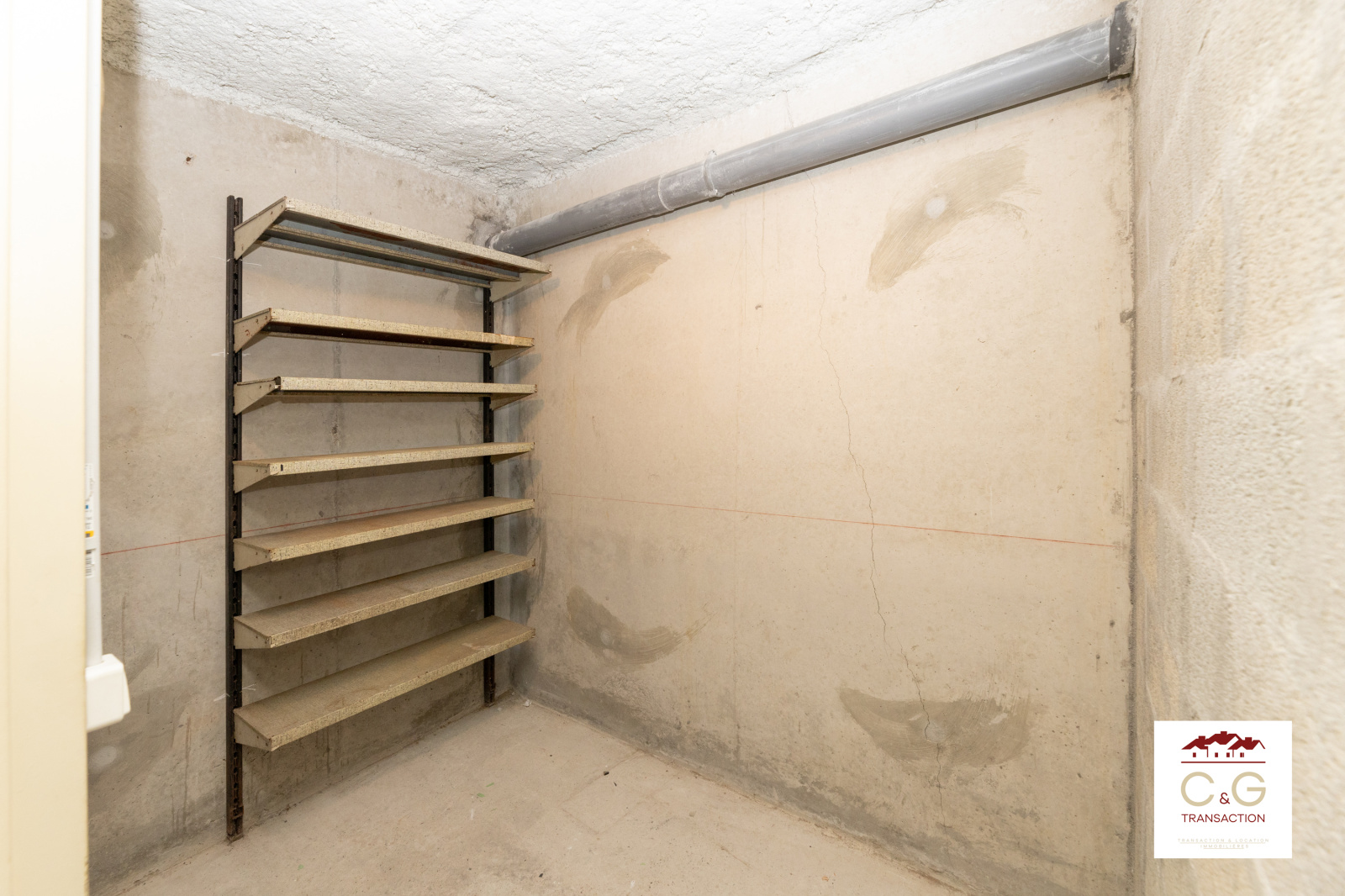 Ce bien comprend également un garage de 18 m² en sous-sol, une grande cave pour le rangement, ainsi qu'une place de parking aérien.