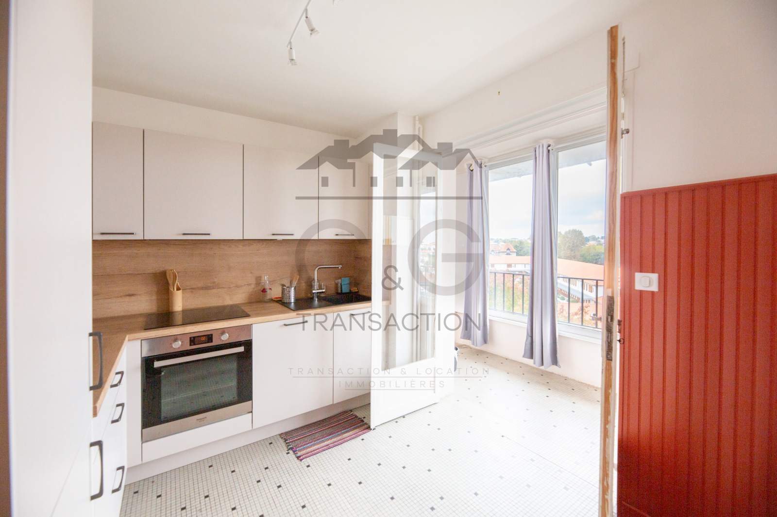 La cuisine séparée, neuve et bien agencée, donne accès à une loggia ferrmée de 6 m².
