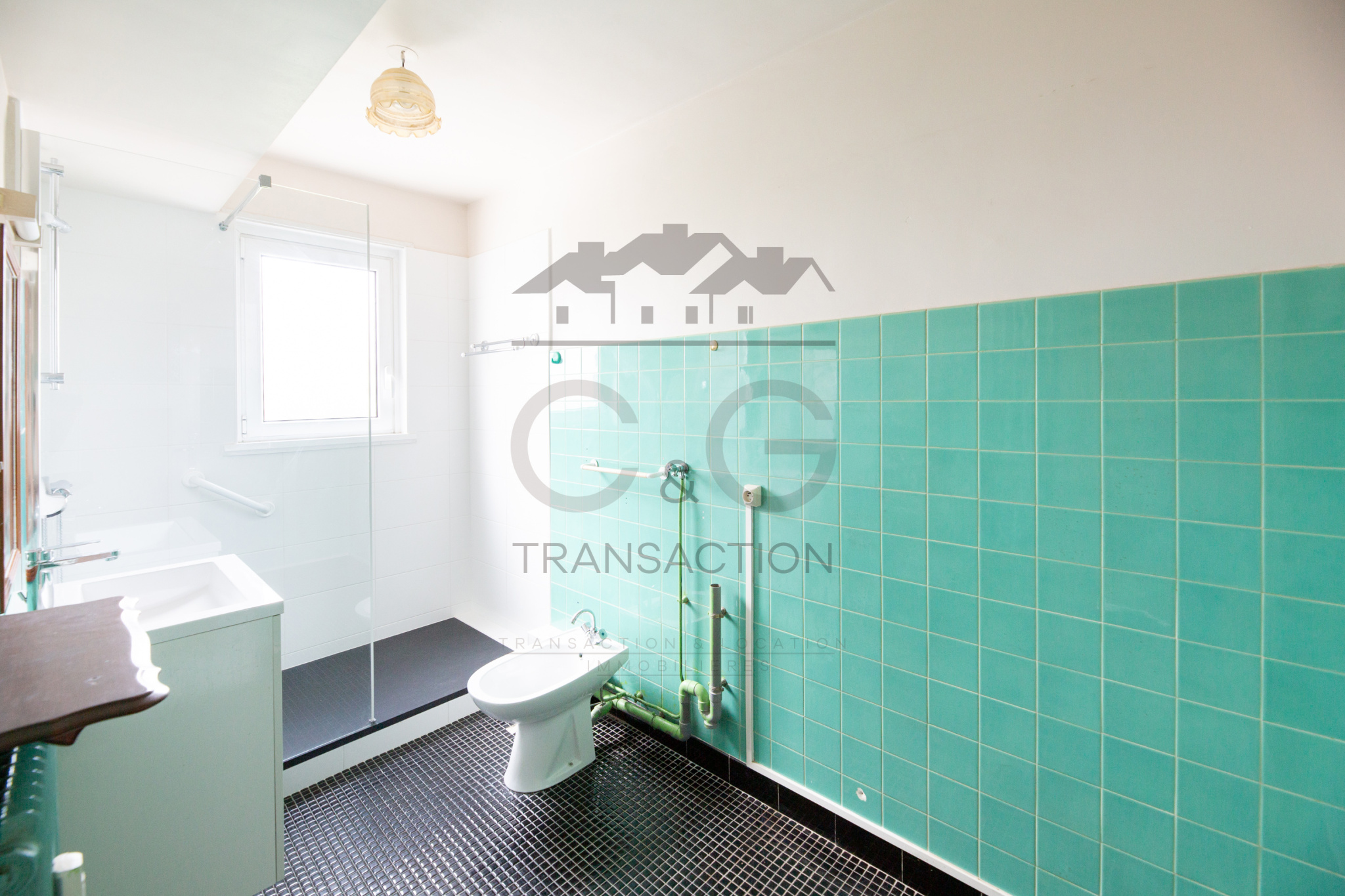 La salle de bain, avec douche à l’italienne, et toilettes indépendants.